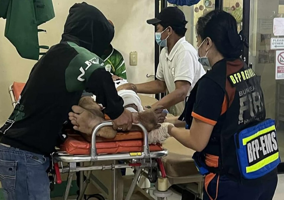 Nagtulungan ang mga BFP personnel at mga kawani ng Senator Ninoy Aquino Municipal Disaster Risk Reduction and Management Office sa pagdala sa mga nasaktan sanhi ng aksidente sa Senator Ninoy Aquino Municipal Hospital upang malapatan ng lunas. (June 15, 2025, handout photo, Senator Ninoy Aquino Fire Station)