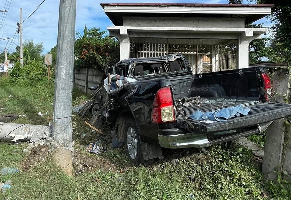 Sakay ang dalawang sundalong minamaneho ng isa sa kanila ng isang itim na pick-up truck na biglang lumihis, bumangga sa poste bago tumama sa sementong bakod sa gilid ng highway.