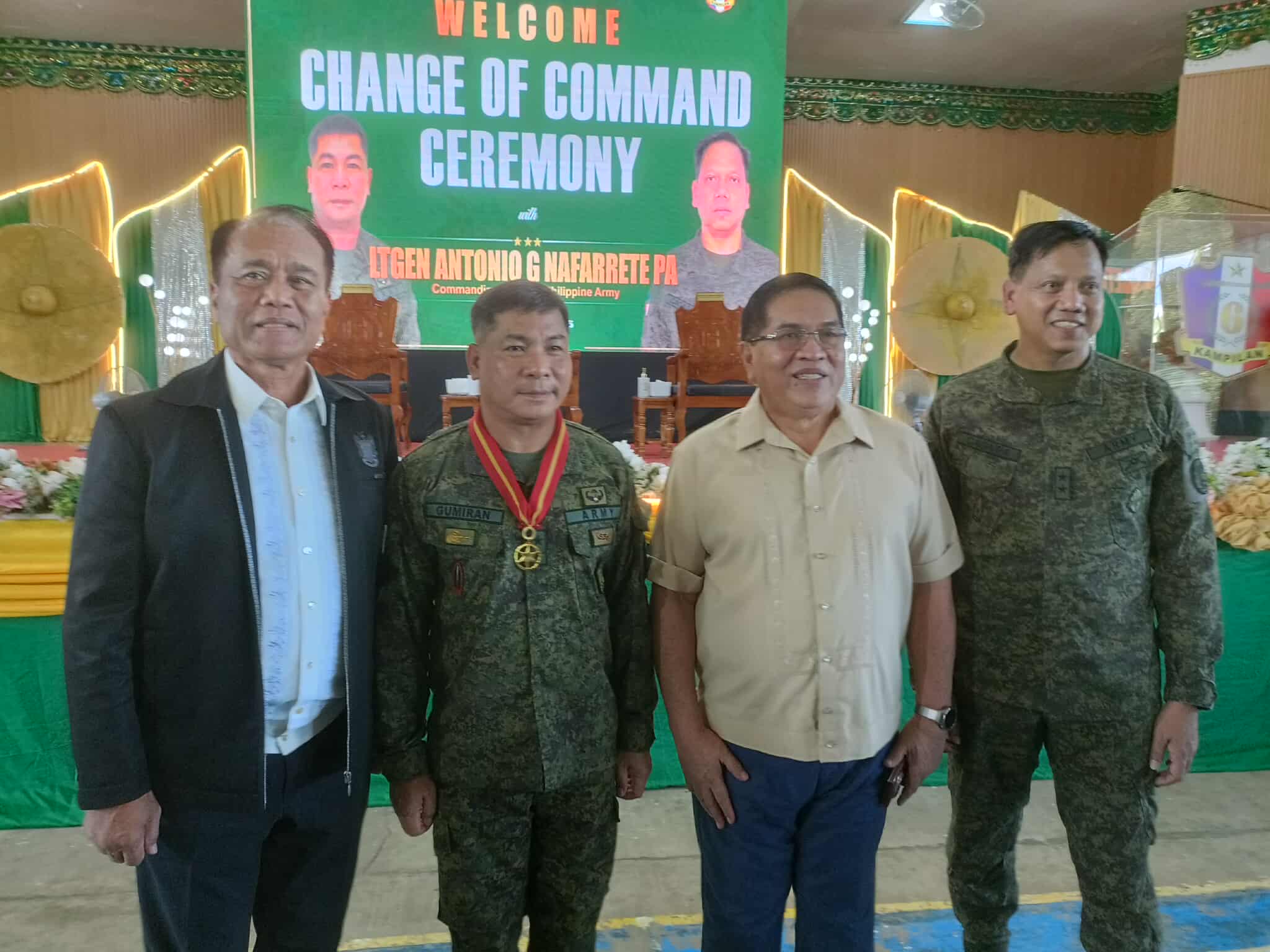 Magkahiwalay na nangako ng suporta sa mga community service at peacebuilding programs ng 6th ID, ngayon nasa pamumuno na ni Cagara, ang dalawang provincial governors na dumalo sa change of command ceremony sa Camp Siongco, si Tucao Mastura ng Maguindanao del Norte, si Ali Midtimbang ng Maguindanao del Sur at si Bangsamoro Chief Minister Abdulrauf Macacua.