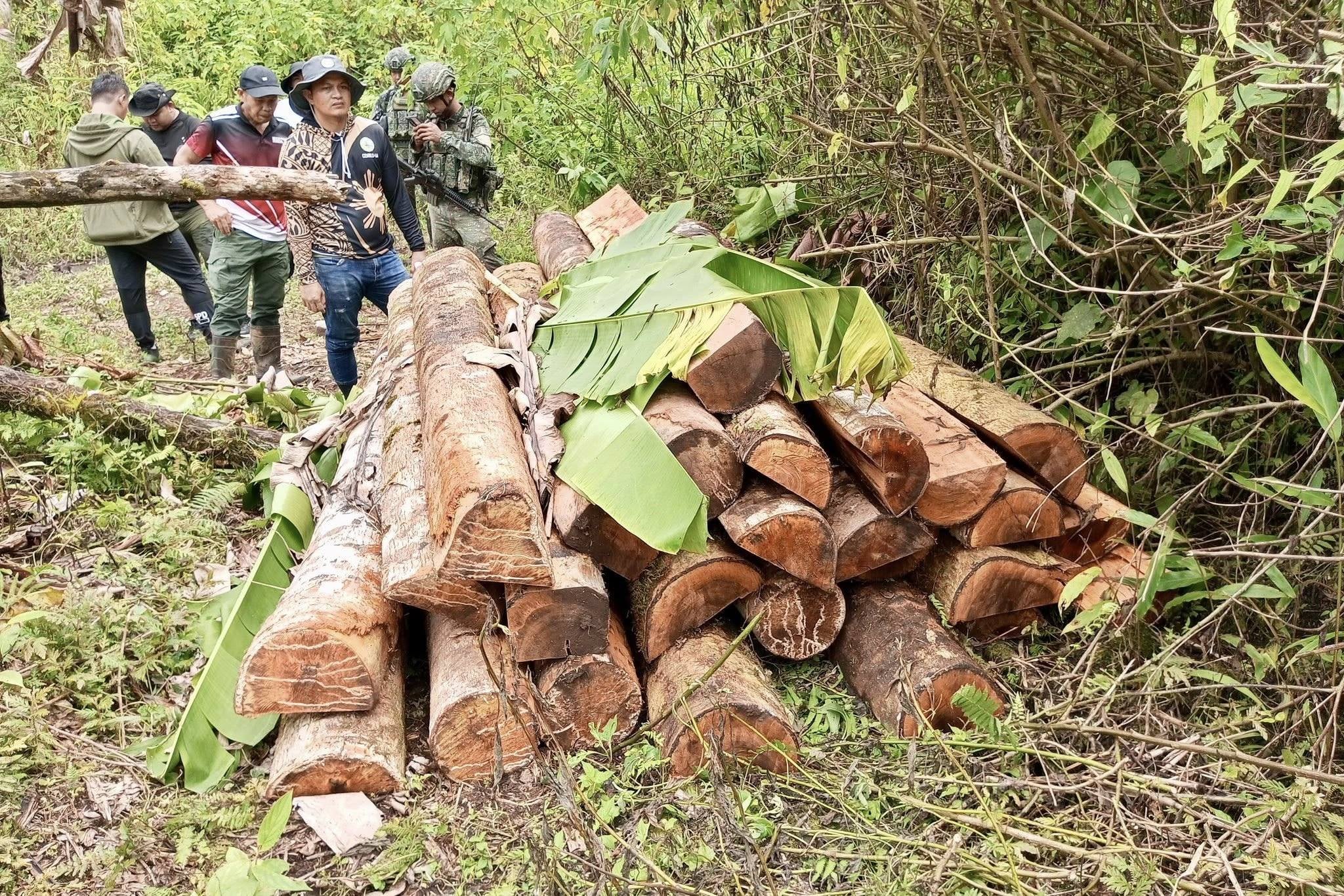 Ayon sa mga local executives sa Buldon, nagsitakbuhan palayo ang mga nagbabantay ng mga tablon, dalawa sa kanila mga chainsaw operators, ng mapuna ang mga mga environment law enforcers at mga tropa ng Marines na patungo sa kanilang kinaroroonan. (September 27, 2025, Buldon, Maguindanao del Norte, Bangsamoro Region)