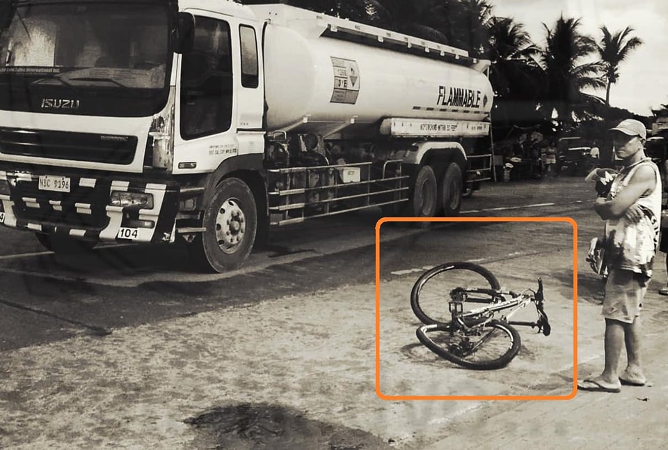 Nagtamo ng maselang mga sugat at pasa sa katawan ang isang barangay tanod na nahagip ng isang fuel tanker habang nagbibisekleta sa Barangay Culasi sa Roxas City sa Capiz Province nitong Miyerkules, June 11, 2025.