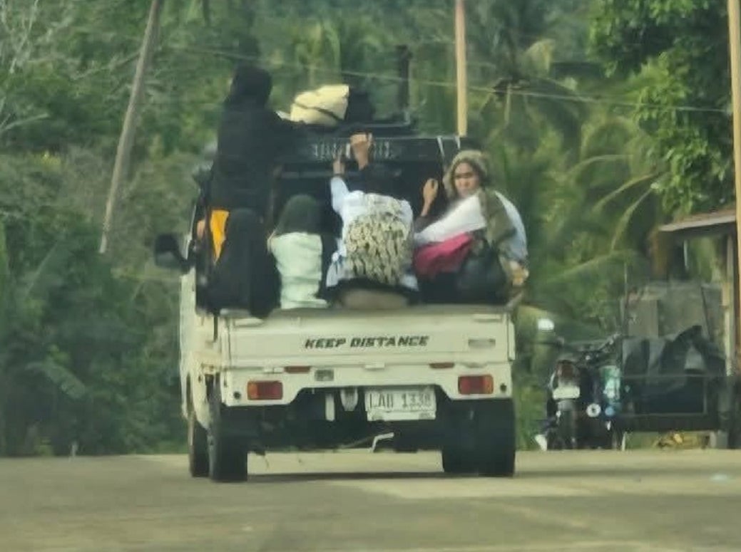 Photo shows a Yakan family fleeing from Barangay Poblacion in Tipo-Tipo amid Tuesday’s gunfights in the area between two groups armed with assault rifles and grenade launchers. (October 29, 2025, Basilan Province, Bangsamoro Region)