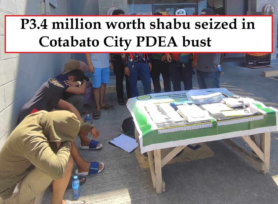 COTABATO CITY (November 12, 2023) — Anti-narcotics agents seized P3.4 million worth of shabu from five alleged dealers entrapped on Saturday afternoon along a busy street here.